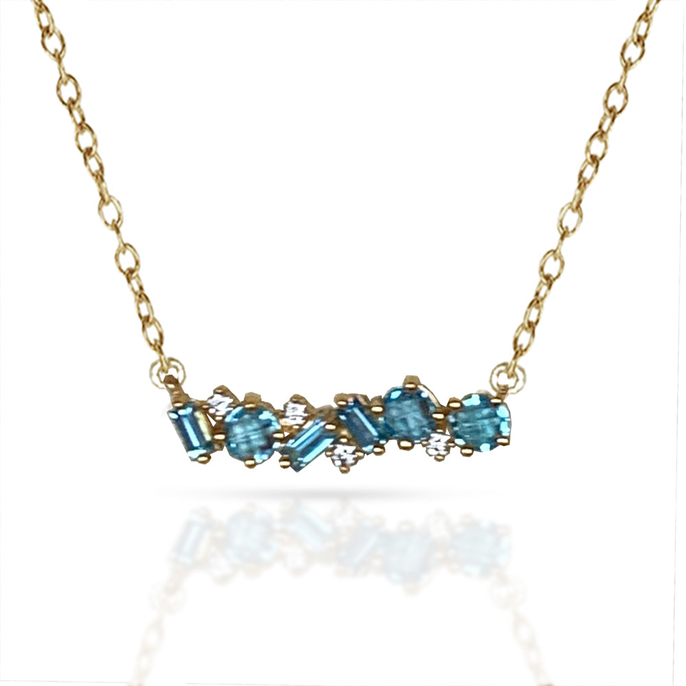 14k gold blue topaz baguette bar necklace MN3341