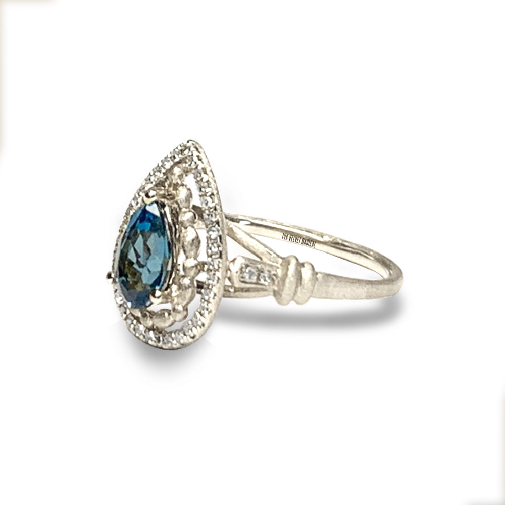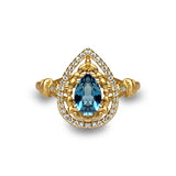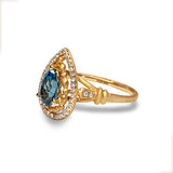 14k matt gold drop london blue topaz fashion ring MR45179