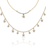 Diamond dew drop and star necklace set in 14k gold