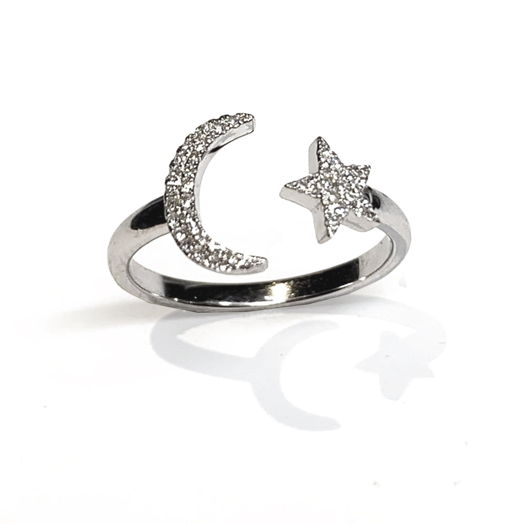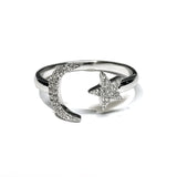 Star & Crescent Moon Diamond Fashion Ring Pave Set In 14K Gold