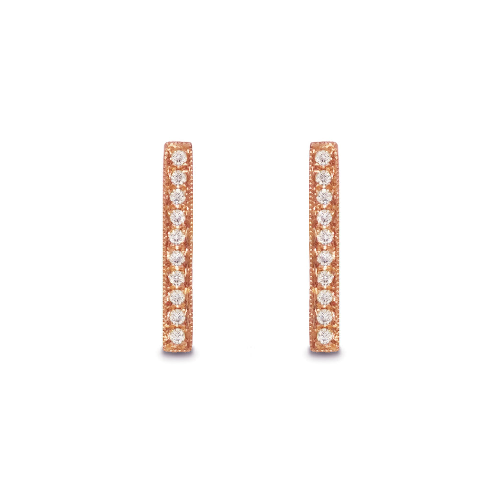 14K Gold Medium Diamond Pave Bar Stud Earrings ME2157