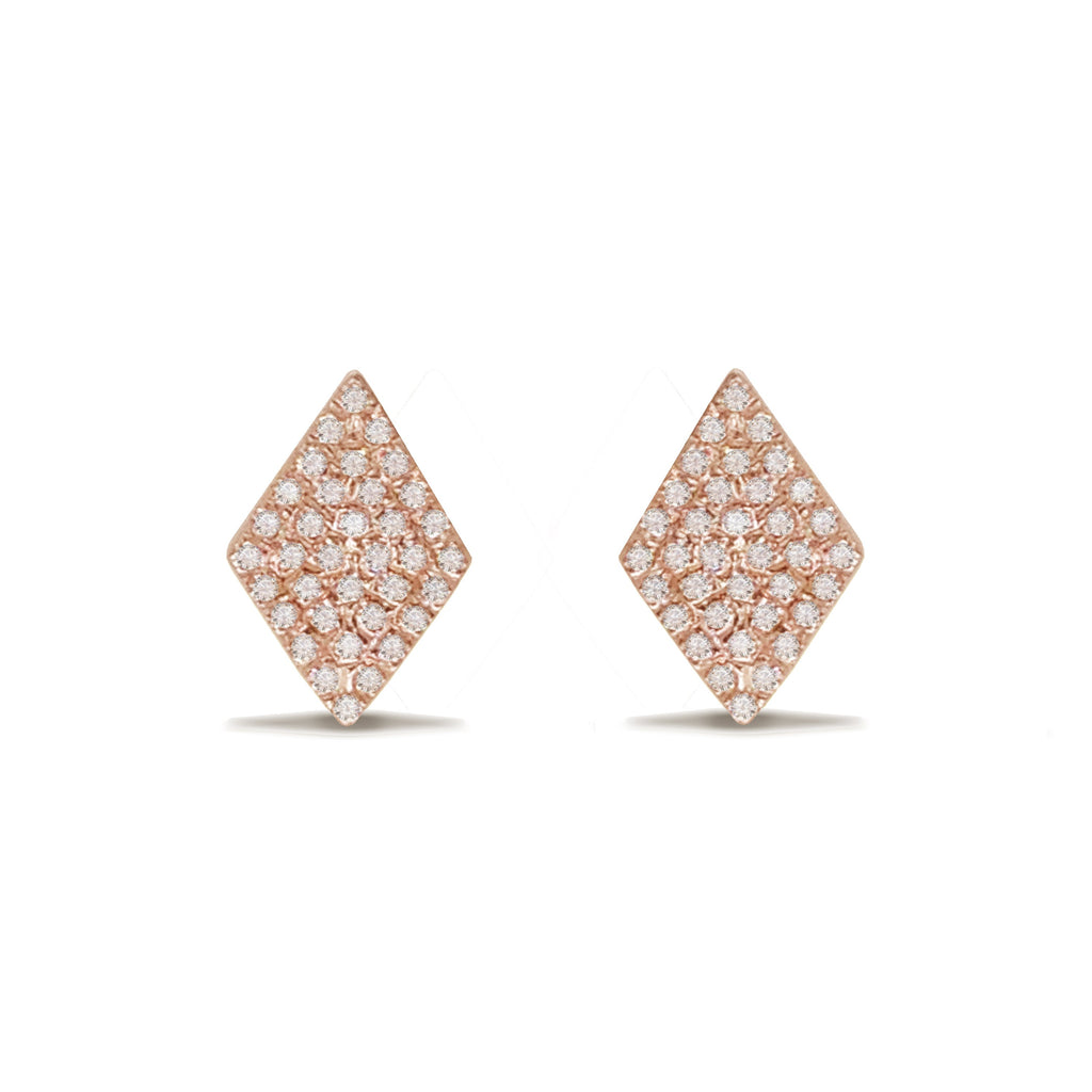 Diamond Shape Pave Diamond Stud Earrings in 14K Gold