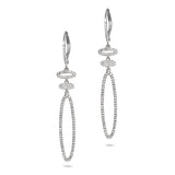 Art deco inspired oval open link pave diamond dangle hoop earrings in 14k solid gold