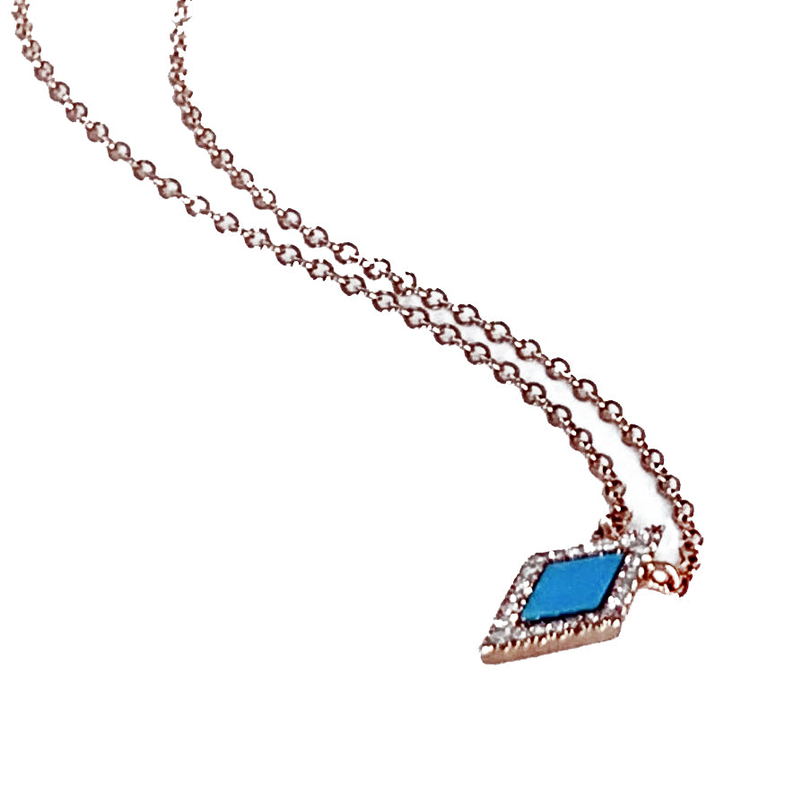 14k Gold delicate diamond shape turquoise necklace MN71675TQ