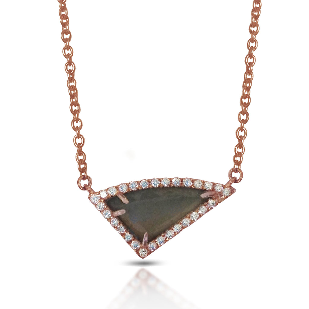 14K Gold Diamond Irregular Triangle Gray Moonstone Necklace ON1GYM