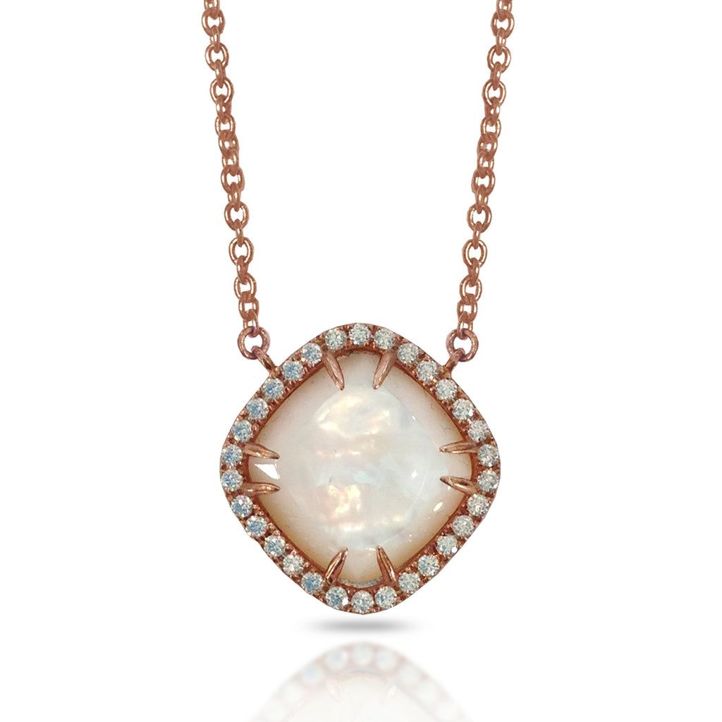 14K Mother of Pearl Cushion Diamond Necklace ON3MP