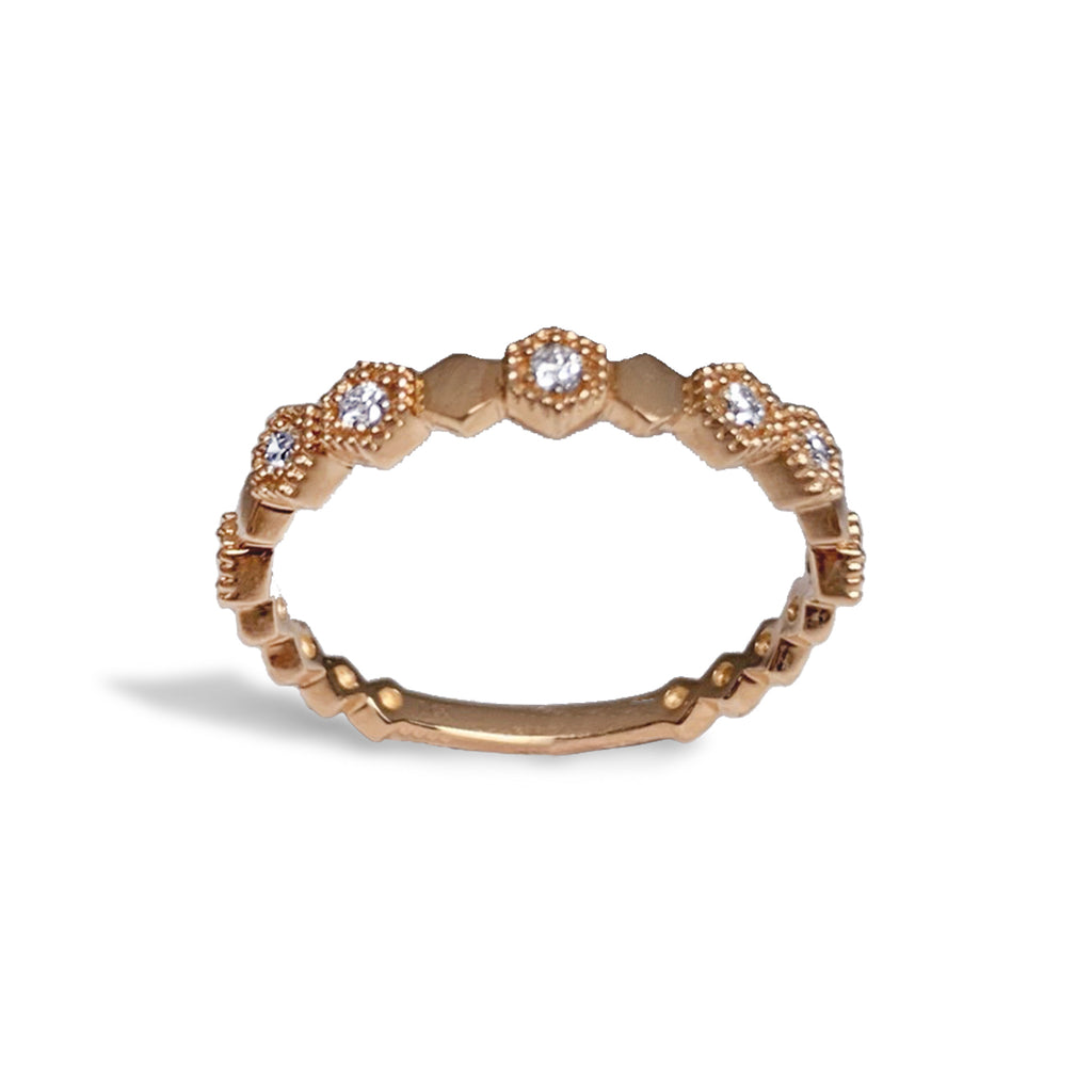 14K Hexagon Diamond Wedding Band Ring SR45053