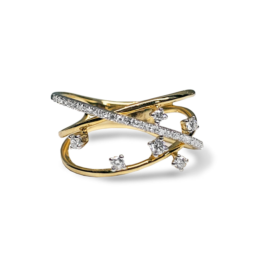 14k gold diamond criss cross fashion ring MR42553 – Velvet Radical