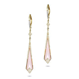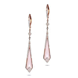 Art deco inspired pink mother of pearl & diamond dangle hoop earrings in 14k solid gold
