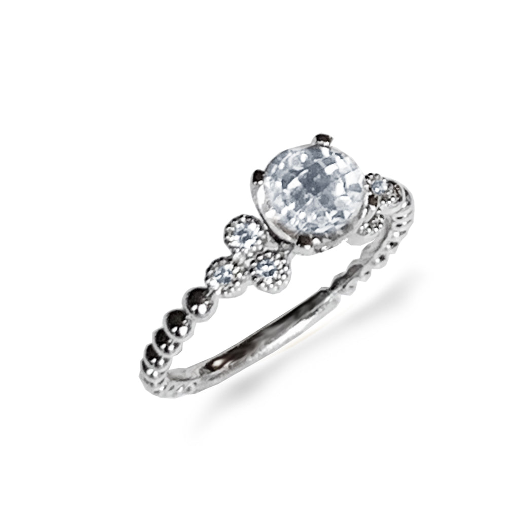 14k gold white topaz Beaded solitaire ring MR47140