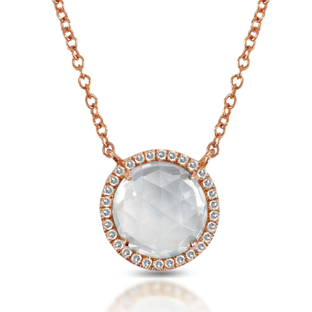 14K Gold Round Halo Diamond & White Topaz Necklace MN22498WT
