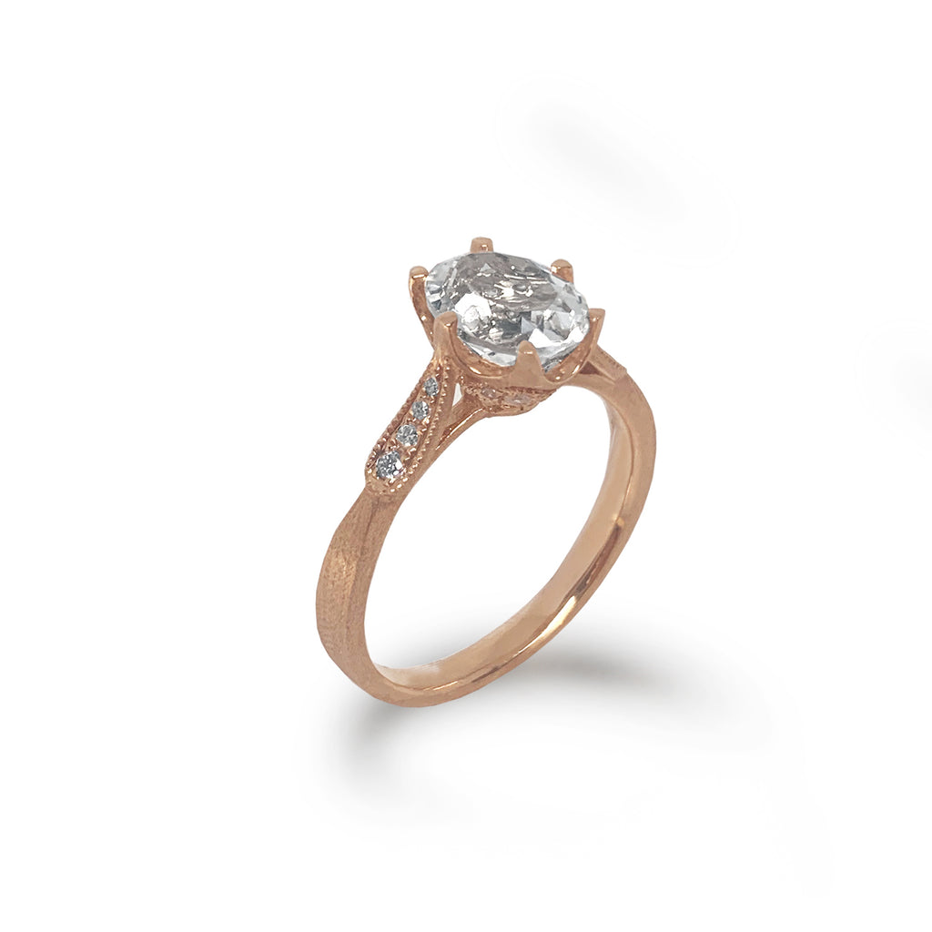 14K Brushed Gold Diamond Oval White Topaz Engagement Ring MR45160
