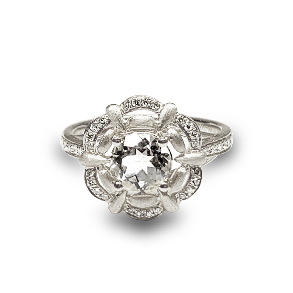 14k matt gold clover diamond white topaz engagement ring MR45176