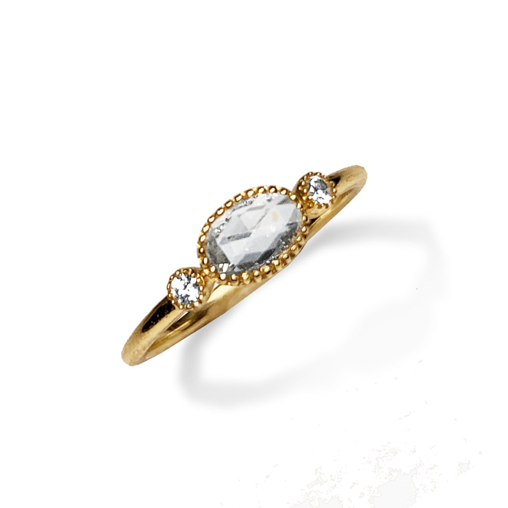 14k gold diamond oval white topaz fashion engagement ring MR45623