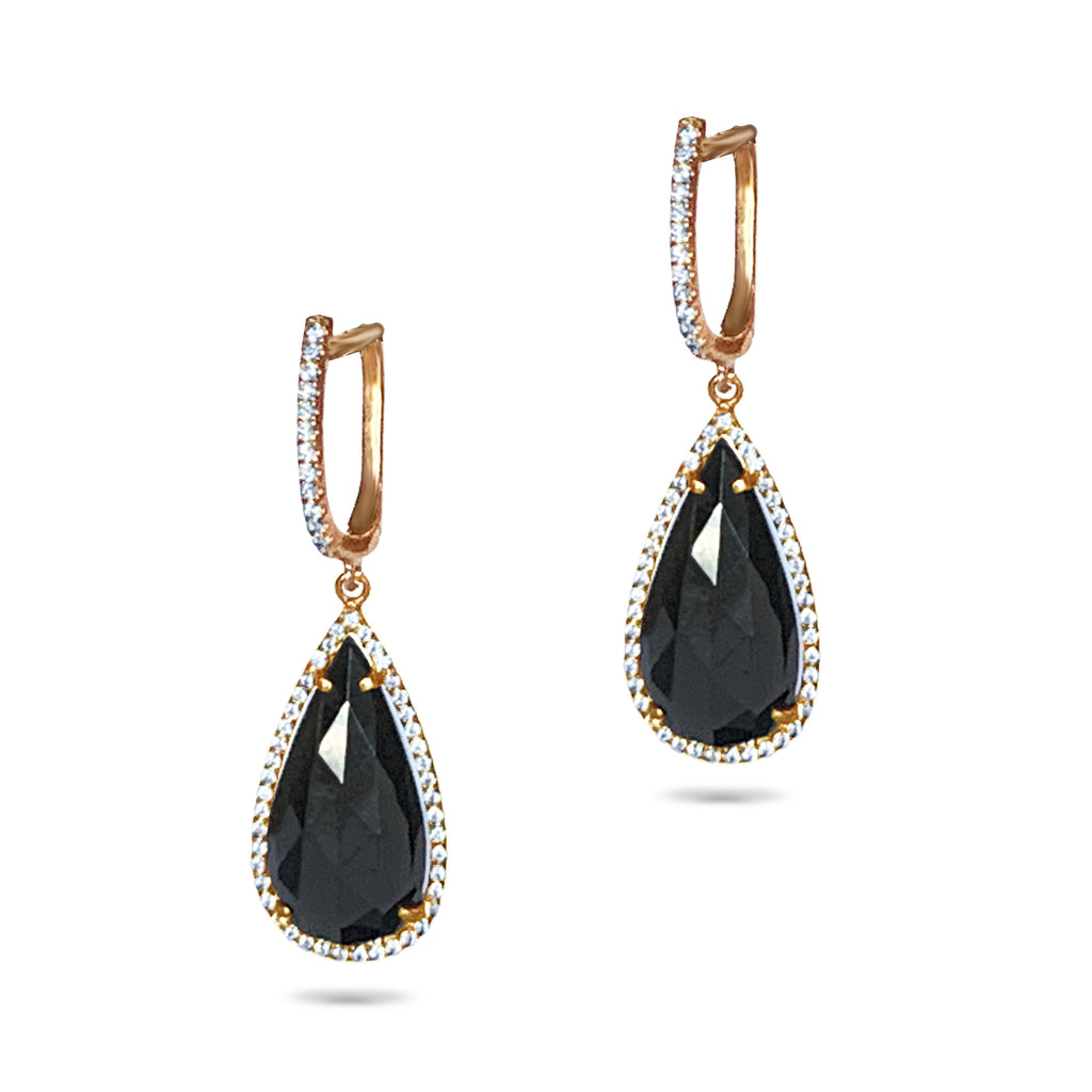 Aretes colgantes tipo argolla de oro de 14k con hematita y diamantes ME26206