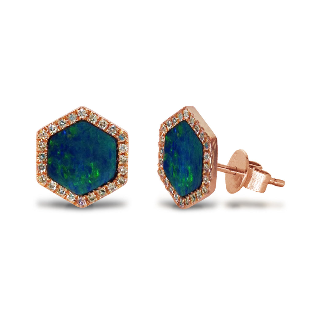 Arete ME2993OP de ópalo hexagonal con diamantes en oro de 14 quilates