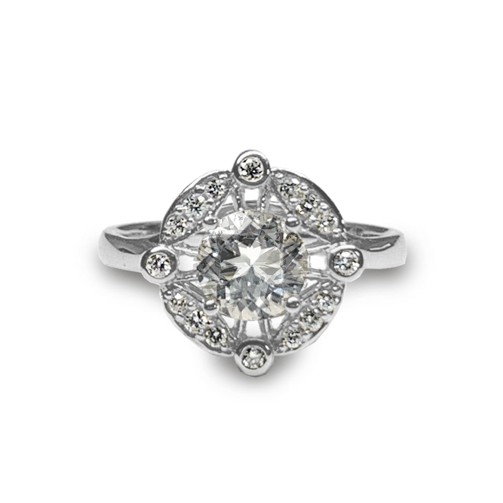 Anel de noivado de topázio branco e diamante exclusivo em ouro 14k MR45172