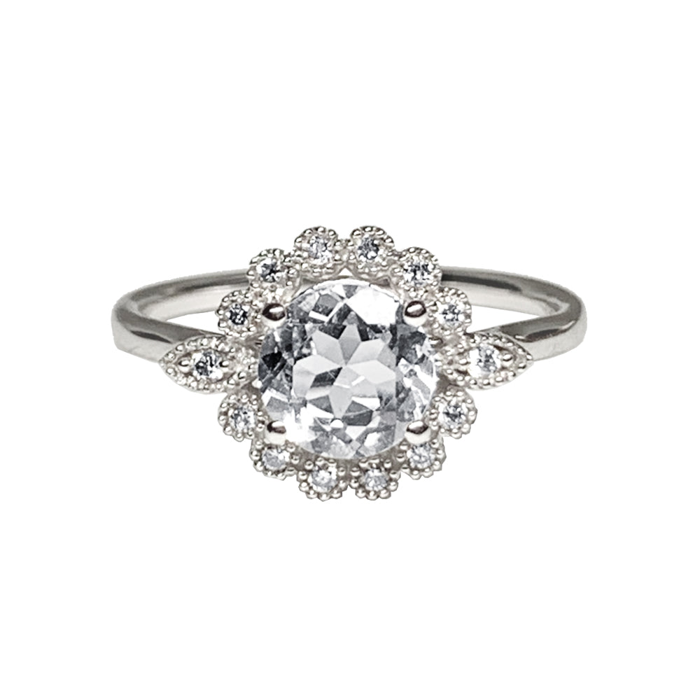Anel de noivado de topázio branco halo ouro 14k MR45181