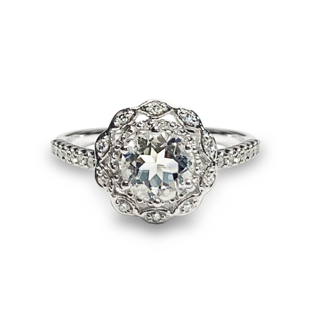 Anel de noivado de topázio branco vintage ouro 14k MR45182